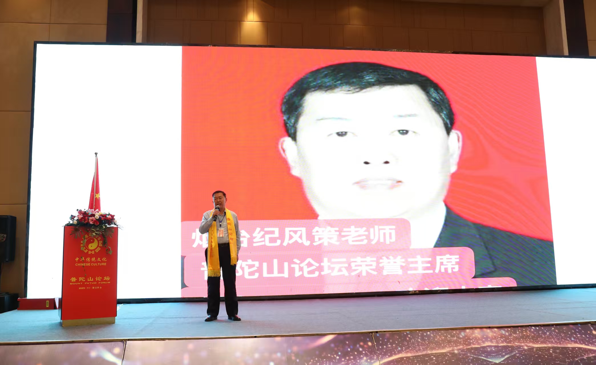 11月2-5日,纪风策老师在浙江省舟山市,出席2025中华传统文化普陀山论坛,并被授予大会荣誉主席。